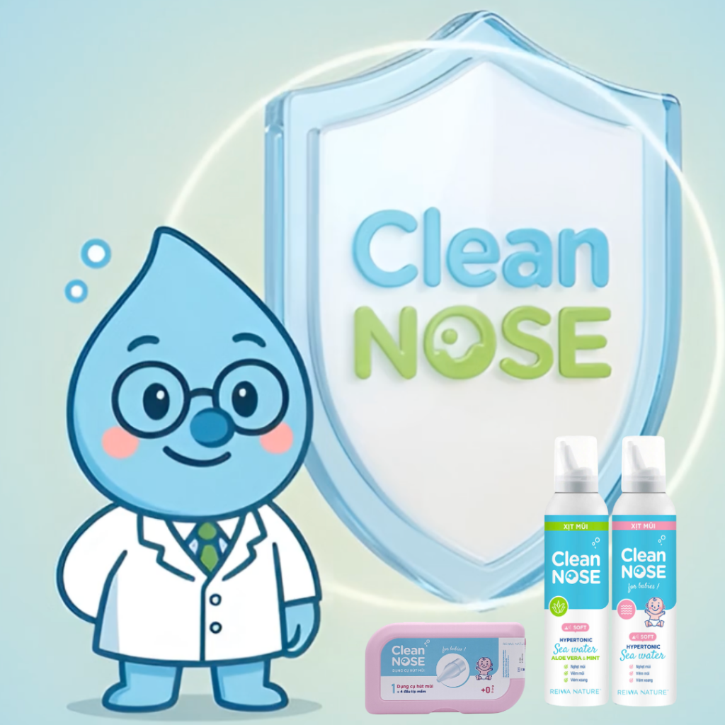 Clean NOSE® là dung dịch xịt mũi ưu trương nhập khẩu từ châu Âu, an toàn cho trẻ từ 3 tháng tuổi và người lớn. Với thành phần nước muối biển tinh khiết từ vùng biển Cancale, sản phẩm giúp làm sạch khoang mũi, làm loãng dịch nhầy, hỗ trợ thông thoáng đường thở và giảm nguy cơ nhiễm khuẩn.